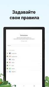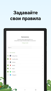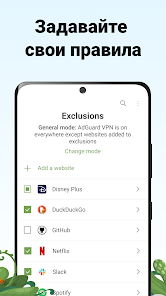 Выбирайте, где AdGuard VPN будет работать: везде, кроме некоторых сайтов, или только там, где укажете.