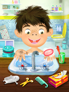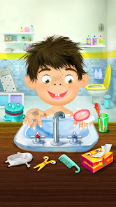 Чистота - это весело, но еще веселее, что после того, как вы поможете выбранному персонажу мыть руки, почистить зубы, постирать, использовать горшок, малыш может лопать мыльные пузыри или играть с разноцветными распылителями, резиновыми утками и различными предметами и игрушками.
