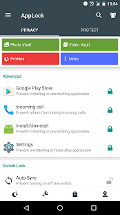 Чтобы включить Дополнительная защита, активировать AppLock как "Администратор устройства". Он используется только для предотвращения удаления AppLock злоумышленников. Будьте уверены, что AppLock никогда не использует это разрешение для доступа к вашим данным о конфиденциальности.