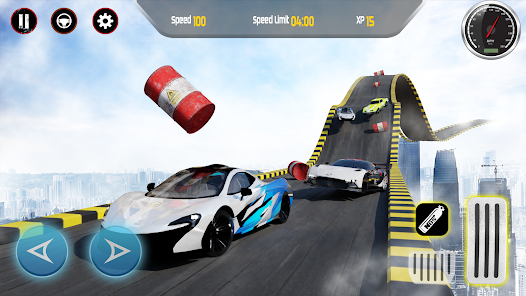 Множество различных режимов автомобильных трюков доступны в этой более крупной и смелой игре с мегарамповыми автомобильными трюками.