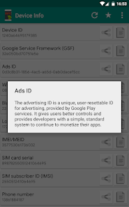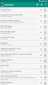 Простое приложение для Android, которое поможет вам получить информацию о вашем Android устройстве, например такую как: идентификатор Android устройства (Device ID), IMEI, номер телефона, Google Service Framework ID (GSF ID), рекламный идентификатор (Advertising ID), локальный IP-адрес, серийный номер устройства, информация о дисплее, информация о системе на кристалле (SoC) и т.д., эти данные вы можете скопировать в буфер или поделиться ими для дальнейшего использования.