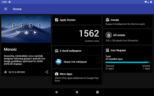 Наслаждайтесь изменением внешнего вида вашего Android-устройства с помощью этого нового пакета значков. Это бесплатное приложение для создания значков содержит более 4000 монотонных, сделанных вручную значков с очень высоким разрешением, которые созданы специально для того, чтобы вы могли изменить свои классические значки и сделать ваше устройство потрясающим. Не только это! Установив Monoic, вы сможете установить эти потрясающие иконки для более чем 35 самых популярных программ запуска! Этот пакет значков сделает ваше устройство более захватывающим, потому что он наполнен некоторыми креативными иконками и регулярно добавляются новые уникальные!