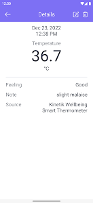 Приложение представляет собой журнал / дневник, предоставляющий пользователю простой дружественный интерфейс для ввода измерений вручную и автоматического сбора результатов измерений по Bluetooth с помощью многих умных термометров, совместимых с MedM.