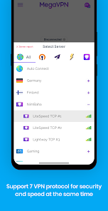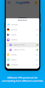 • Раздельное туннелирование: выберите, какие приложения будут использовать VPN, а какие нет, когда ваше устройство подключено к MegaVPN.