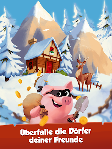 Зарабатывание монет на игровом автомате — не единственный способ получить добычу. Ее можно украсть! Атакуйте друзей и врагов, чтобы набрать достаточно добычи для строительства деревни. Не нужно разбивать копилку! Наносите ответный удар и выходите победителем из схватки с врагами. Бум! Отомстите тем, кто напал на вашу деревню, и берите то, что по праву принадлежит вам! Принесите свою лопату для монет и разбогатейте снова! Никогда не знаешь, какие сокровища можно найти в чужой деревне!