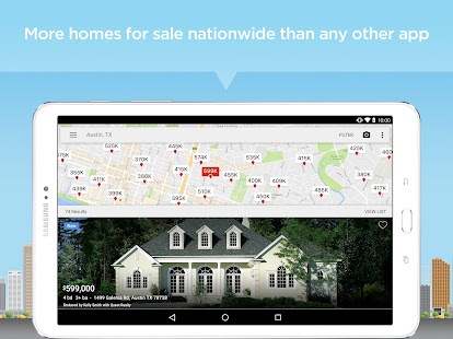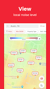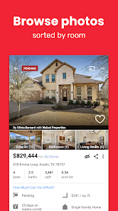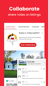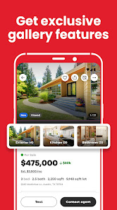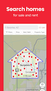 • Поиск домов для продажи по цене, размеру, количеству спален и ванных комнат, школам, времени в пути и другим параметрам.