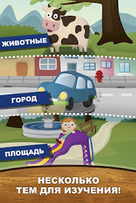 Просто играя в приложении Английский для детей, ваш ребенок сможет выучить названия животных, цветов, частей тела, цифры, виды транспорта и пр.