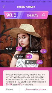1. Функция анализа красоты, анализирует красоту вашего лица на основе искусственного интеллекта и больших данных, а также проверяет красоту лица на основе глаз, рта, носа, формы лица и других измерений.