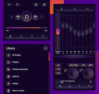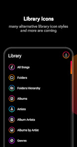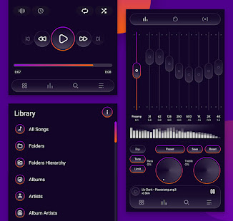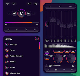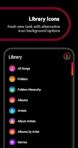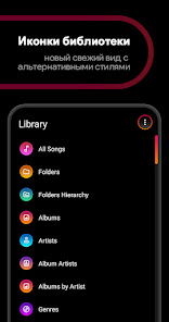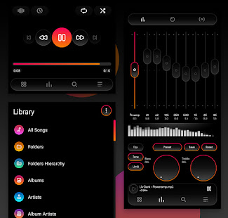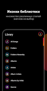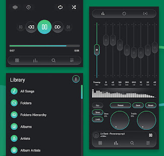 Liv Dark использует красивые цвета с настраиваемыми значками, что придает Poweramp свежий, современный вид!