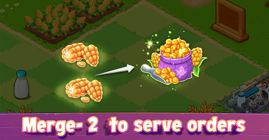 - Объединяйте объекты, чтобы превратить землю в плодородную и превратить их в новые и более крупные объекты