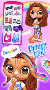 Лиза - самая милая девочка-кошка с красивой рыжей шерстью. Но у нее такие растрепанные волосы! Давайте поможем Лизе сделать прическу своей мечты и преобразить ее одежду! Завейте, заплетите и покрасьте волосы котенка в цвета радуги! Выбери самую симпатичную кошачью одежду с принтами единорога, кексов и цветов!
