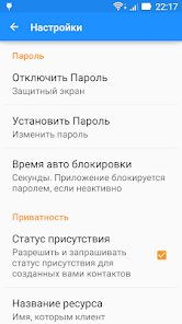 Для безопасности данных мессенджер имеет пароль на вход, автоблокировку паролем через указанное время простоя, а также не требует разрешения на доступ к Контактам.