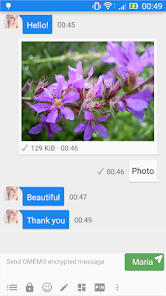 Доступны стандартные функции такие как Смайлики, OMEMO Шифрование, Групповые чаты, Уведомление о наборе текста, Аватары, Отображение изображений, Передача файлов, Подтверждение доставки сообщений и другие.