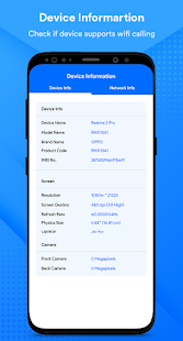 Информация об устройстве: вы можете получить информацию об устройстве, такую как имя, название модели, код продукта, сведения об экране, информацию о процессоре, информацию о сети, а также об операторе и стране.