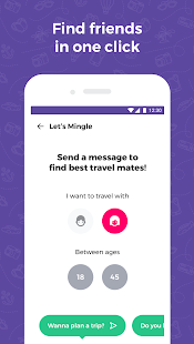 🌴 Выбирайте потрясающих путешественников с помощью функции приглашения и сопоставления в автоматическом чате Let's Mingle. Отправьте одно сообщение группе хорошо подобранных путешественников!