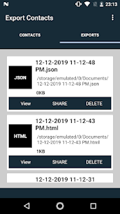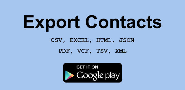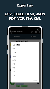 Экспортируйте все свои контакты одним щелчком мыши в различные форматы файлов, такие как CSV, EXCEL, HTML, JSON, PDF, VCF, TEXT, TSV и XML.