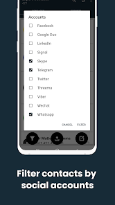 1.) Отфильтруйте свои контакты по учетным записям в социальных сетях (WhatsApp, Telegram, Viber, Skype, Google Duo и многое другое)