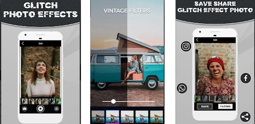 Эффект видео сбоя - Фотоэффекты, вы можете легко деформировать стили видео и фотоискусства. Просто выберите один из множества эффектов Glitch After Effects и удерживайте его, чтобы применить его при видеозаписи и фотосъемке. Кроме того, множество красивых фильтров и мощные инструменты редактирования сделают ваши клипы или изображения сверкающими после эффектов.