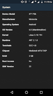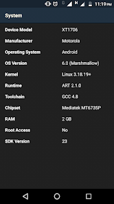 - Информация о системе : подробная информация о вашей ОС Android, среде выполнения, ядре и SDK.