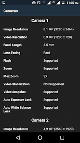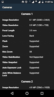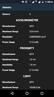 - Информация о датчиках : сообщает информацию о датчиках, таких как акселерометр и магнитометр, включая диапазон, разрешение и потребление энергии.