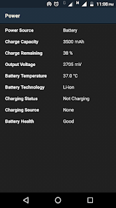 - Информация о батарее : подробная диагностика батареи вашего устройства, включая емкость заряда, выходное напряжение и температуру батареи.